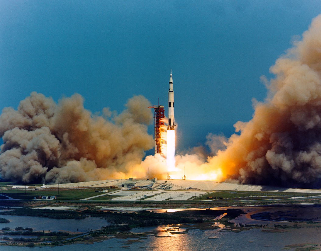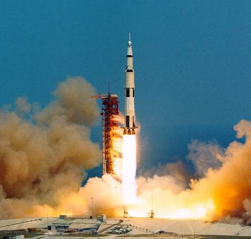 The powerful 363-foot tall Apollo-Saturn 5 space vehicles were launched from Launch Complex 39, Kennedy Space Center, Florida.