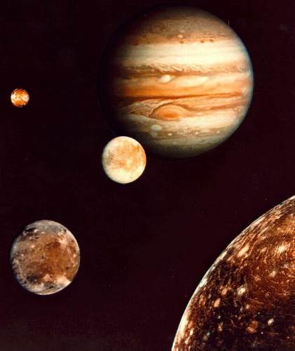 the Galilean satellites, were photographed separately by Voyager 1 and assembled into this
